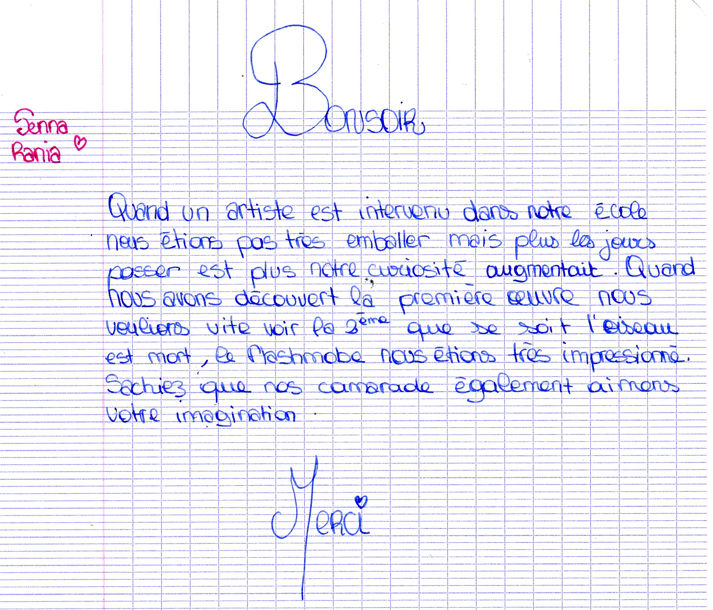 Discours au Vernissage de l'exposition le 17 Janvier 2014 de Senna et Rania élèves de 5°